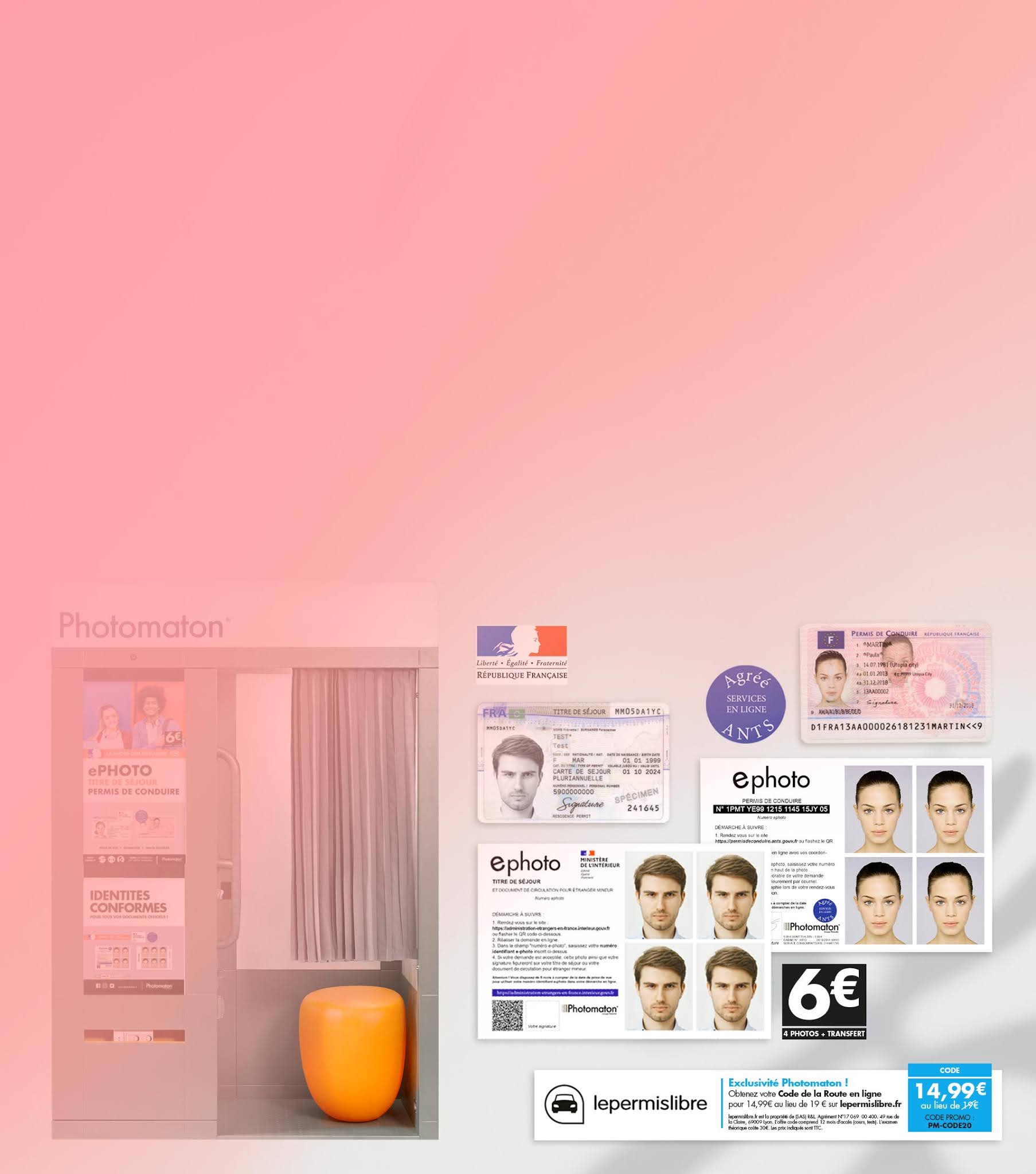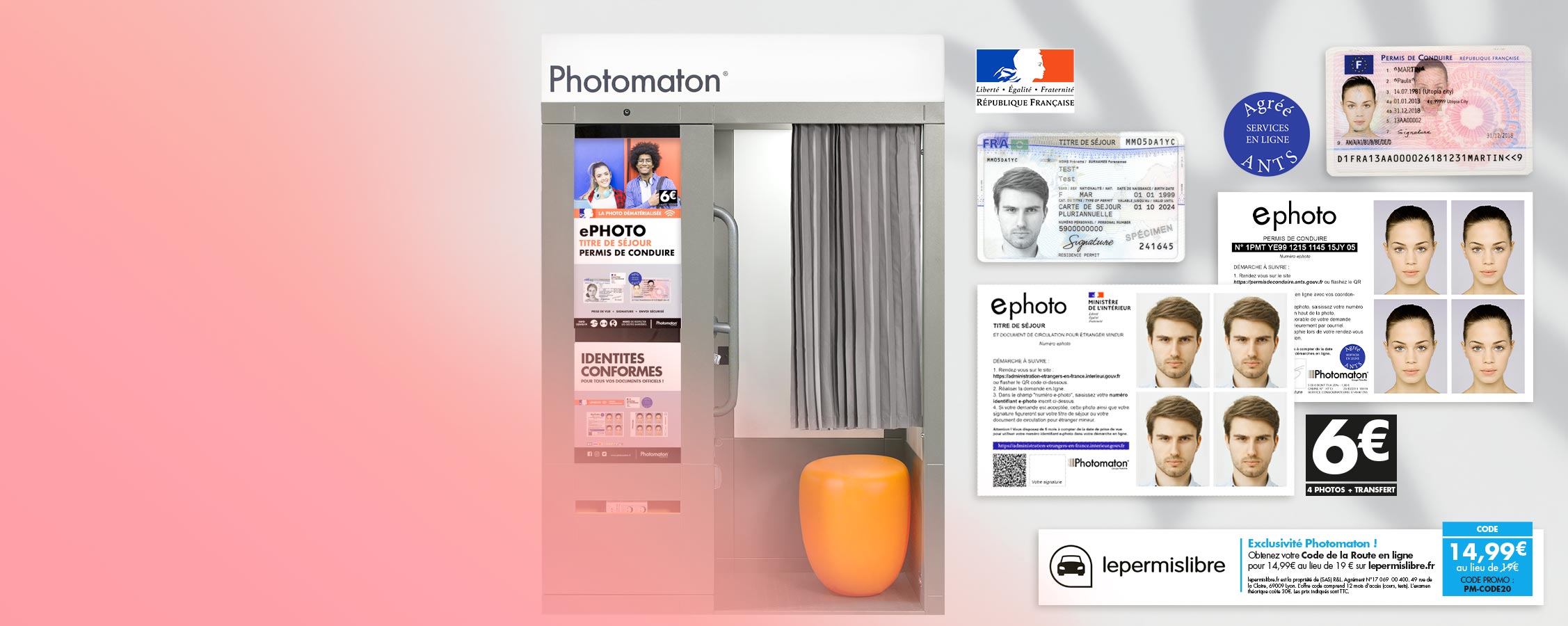 Il est aujourd’hui nécessaire d‘effectuer une demande de permis de conduire en ligne via une plateforme web dédiée. En partenariat avec le Ministère de l’Intérieur et l’Agence Nationale des Titres Sécurisés, Photomaton® a déployé un nouveau service ephoto dans la majorité de ses cabines photographiques. En sélectionnant ce service, il est maintenant possible de transférer sa photo d’identité et sa signature sur un serveur sécurisé. La planche imprimée comprend un numéro ephoto unique, 4 photos d’identité conformes à la norme ICAO, et la démarche à suivre pour faire sa demande en ligne de permis de conduire. La saisie de ce numéro ephoto au cours de cette démarche permet d’intégrer sa photo d’identité et sa signature dans sa demande de permis de conduire.